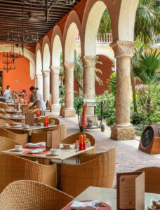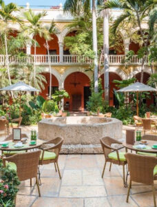 Jardín de Santa Clara, evocación colonial: El hotel Sofitel Legend Santa Clara, alojado en un convento con 400 años, abraza un restaurante rodeado por palmas reales, orquídeas nativas y helechos cartageneros.